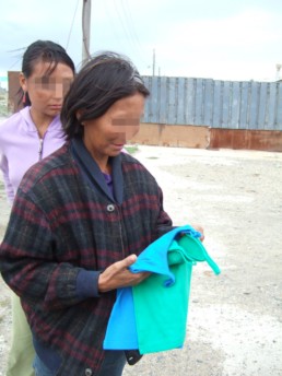 Comme il nous restait des habits, nous les avons emportés avec nous lors d’un voyage privé pour visiter la ville natale de Sodgerel. Nous avons distribué le reliquat au fur et à mesure des familles rencontrées.