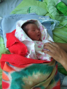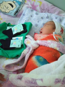 Finalement, nous nous sommes rendus à la maternité de la ville pour soutenir de jeunes mamans, car nous avions reçu des habits pour bébés.